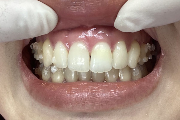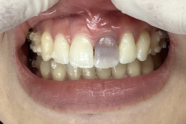 「急に歯が変色したので白くして欲しい」ということでご来院いただきました。ウォーキングブリーチ治療で現状よりも白さを取り戻すことができました。