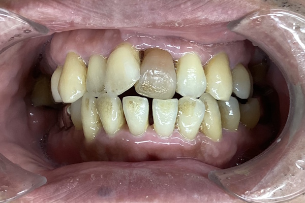 「歯の変色を白くして欲しい」ということでご来院いただきました。ウォーキングブリーチ治療で現状よりも白さを取り戻すことができました。